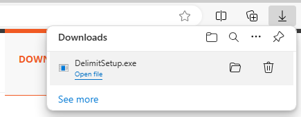 You may see this warning message when trying to download our installer: DelimitSetup.exe, when using Microsoft Edge or some other browser. This is because we have recently updated our software with a new release and with it also our DelimitSetup.exe installer. Meaning, DelimitSetup.exe is relatively new and has not yet been downloaded often enough to prevent this message from showing. MS Edge and MS Defender SmartScreen, by default, block such new downloads and the execution of such downloads, hence the warning message. To circumvent this you can do the following: